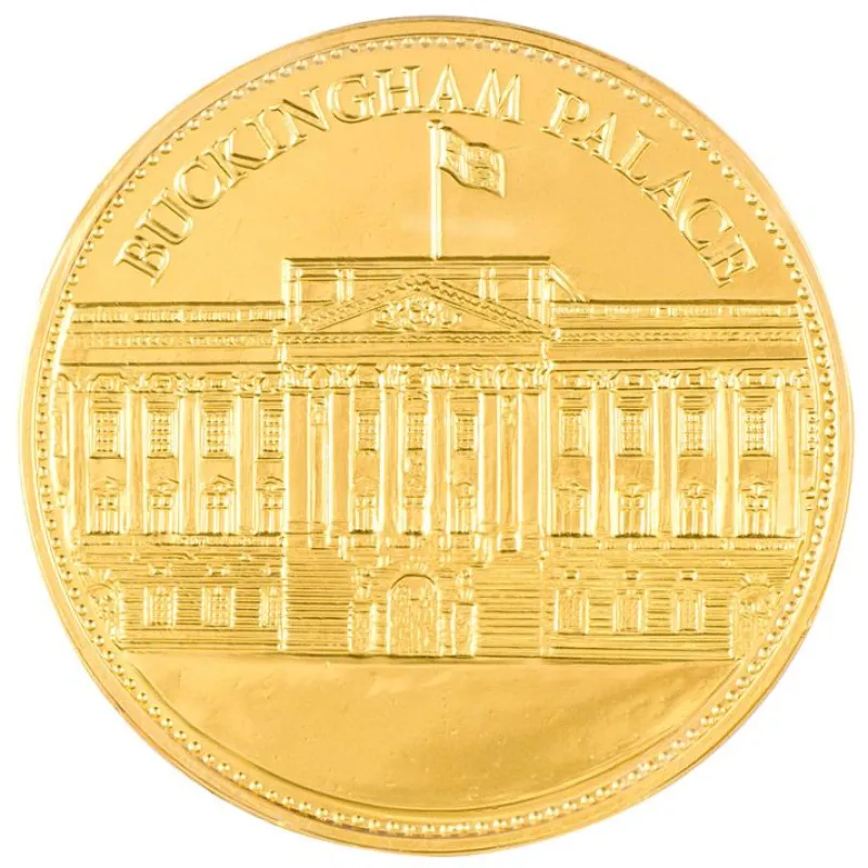 A Delicious Rich Chocolate Coin Made From Fine Milk Chocolate Encased In A Gold Foil Wrapper With An Embossed Design Featuring The Iconic Buckingham Palace Façade. Completed In 1914, This Grand Portland Stone Façade Overlooks The Mall, And Was Designed By Sir Aston Webb. He Was Commissioned To Reface The Front Of Buckingham Palace After The Original Frontage Had Been Stained By Decades Of Smog And Soot Produced By Industrial London.