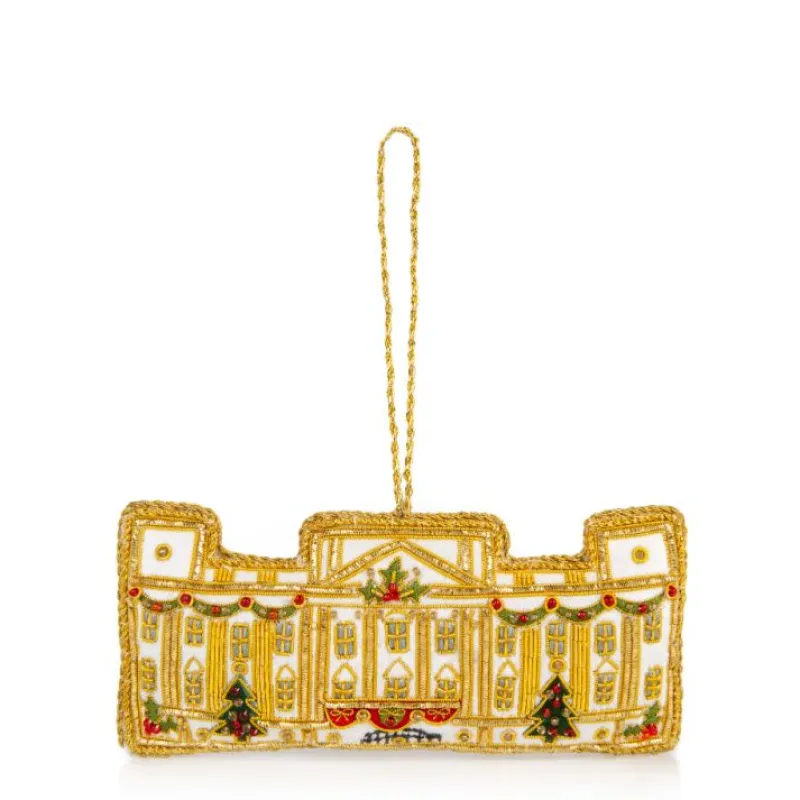 This Magnificent Christmas Decoration Depicts The Façade Of Buckingham Palace Festively Adorned With Traditional Wreaths, Boughs Of Holly And The Epitome Of Seasonal Décor, A Splendid Christmas Tree.