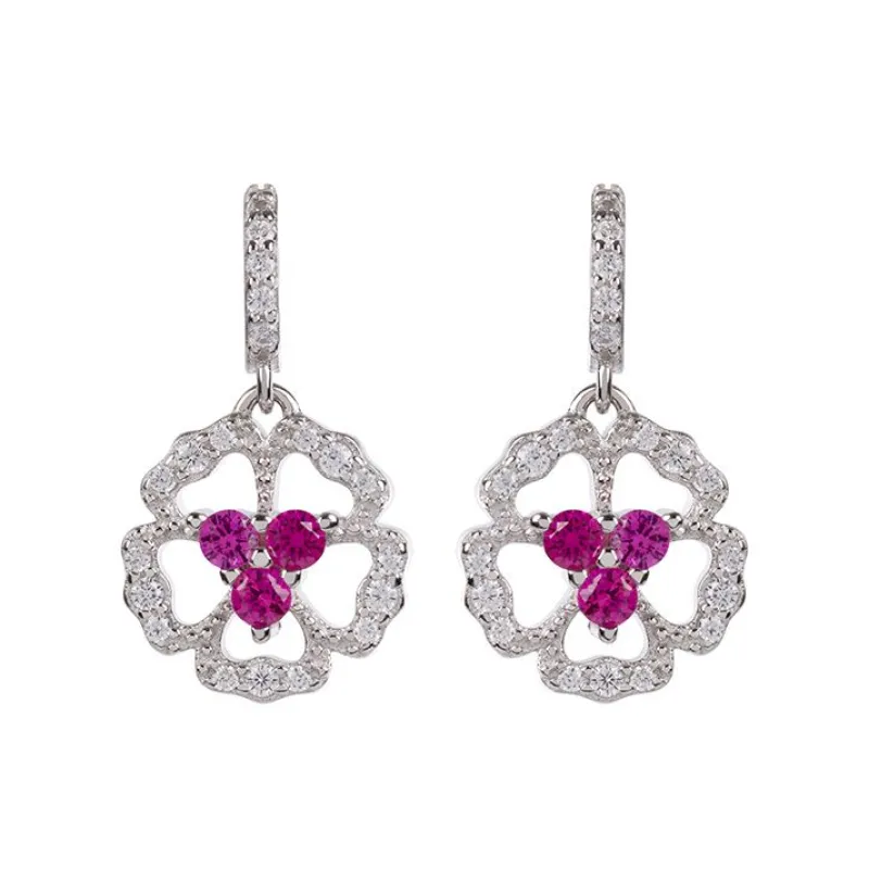 Set With Cubic Zirconia Crystals And Synthetic Rubies, These Earrings Are Hallmarked Sterling Silver.