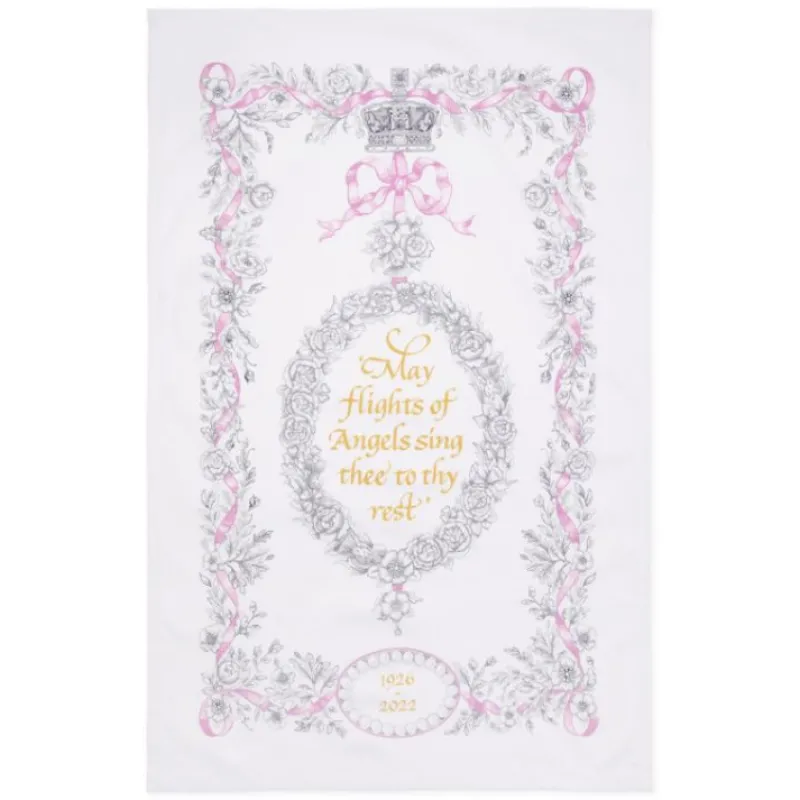 To Celebrate The Life Of Queen Elizabeth Ii, Royal Collection Trust Has Commissioned This Exclusive Range.The Central Element Of The Design Features The Words Taken From His Majesty King Charles Iii’S First Public Tribute To Her Late Majesty, “May Flights Of Angels Sing Thee To Thy Rest”. It Is Surrounded By Depictions Of The National Emblems. The Decorative Borders Include Roses, Myrtle, Rosemary And Oak Leaves From The Funeral Bouquet.Made In The Uk100% Cotton48 X 74 Cm Wash Similar Colours Together 40 Degrees. Do Not Bleach/ Do Not Tumble Dry/ Warm Iron/ Do Not Dry Clean