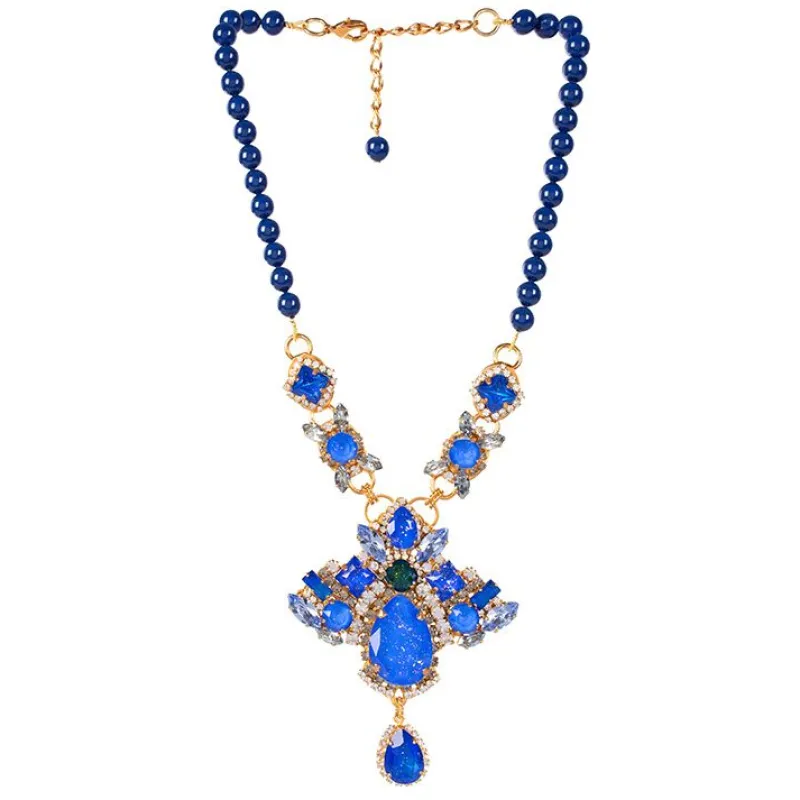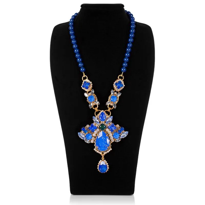 Set Into Electro Plated Base With 23.7 Carat Gold, This Statement Necklace Is Made With Magnificent Deep Blue Crystals, Of The Highest Possible Quality And Some Stones Are Specially Enamelled To Give Extra Depth. The Necklace Is Finished With Blue Beads To Complete A Bold Piece Of Jewellery.