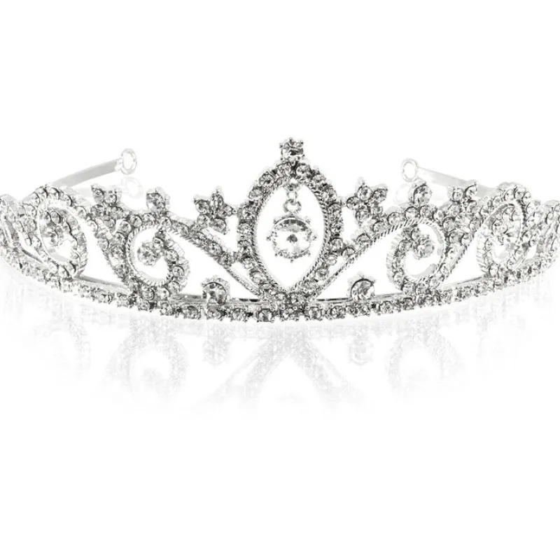 This Tiara Features An Intricate Scrollwork Design With Delicate Floral Touches To Create A Wonderfully Ornate Headpiece. At The Centre Of This Tiara Is An Oval Shape With An Elegant Crystal Drop Which Catches The Light As It Moves.