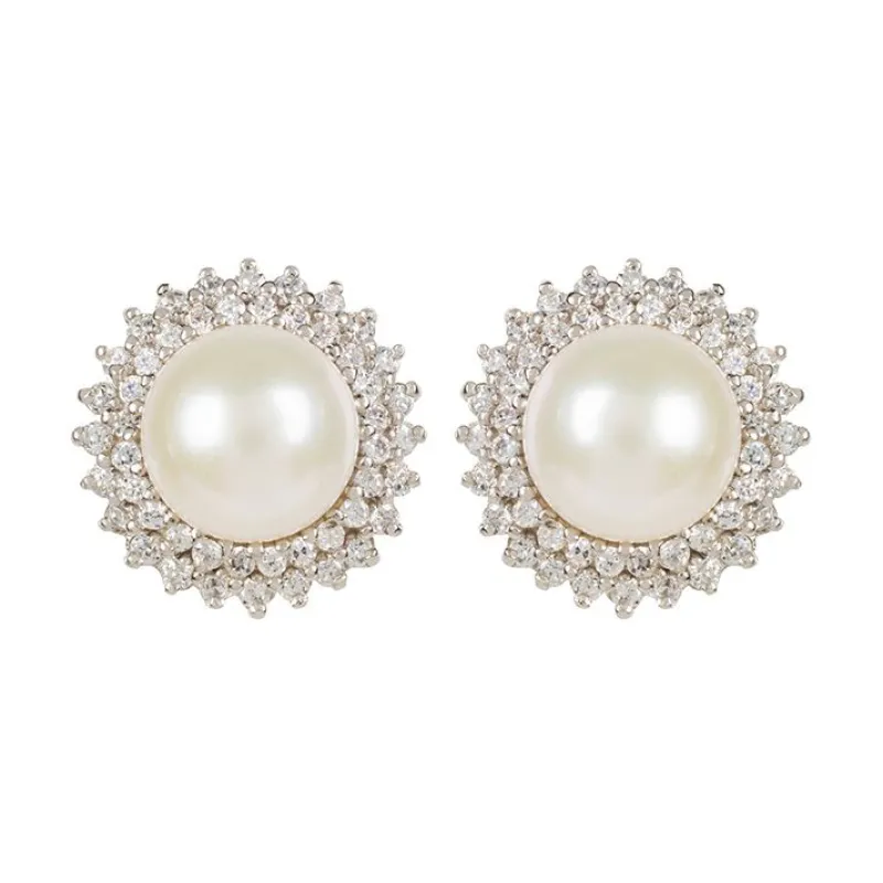 These Elegant Earrings Have A Freshwater Pearl At Their Centre, Delicately Surrounded By Sparkling Crystals.925 Silver Plated Posts.2.2 X 2.3 Cm.