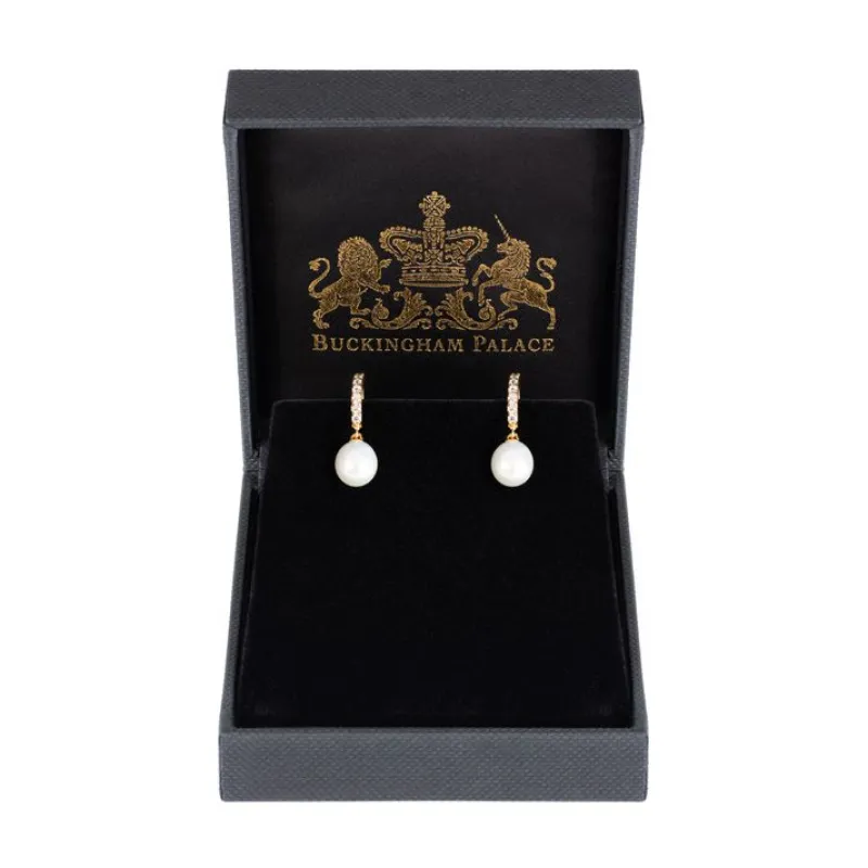 With Delicate Crystals Set Into An 18 Carat Gold Plated Base Metal, These Elegant Earrings Are Finished With Shimmering Freshwater Pearls And Sterling Silver Posts.