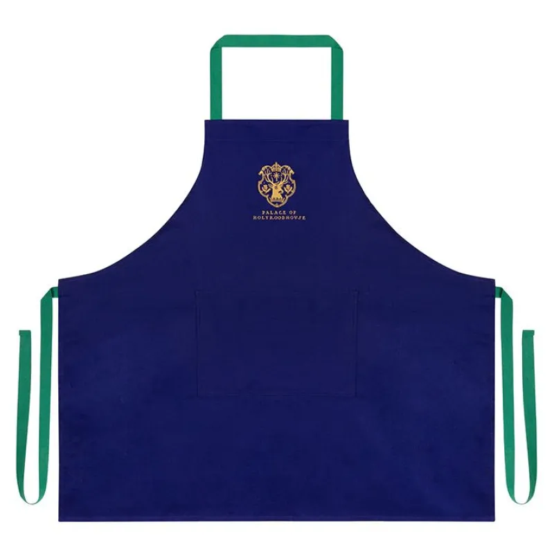 Protect Your Clothes While You Cook Up Your Royal Biscuits, Cakes And Other Bakes. This Stylish Apron Features The Scottish Coat Of Arms On Deep Blue Cotton With Contrasting Green Apron Ties.