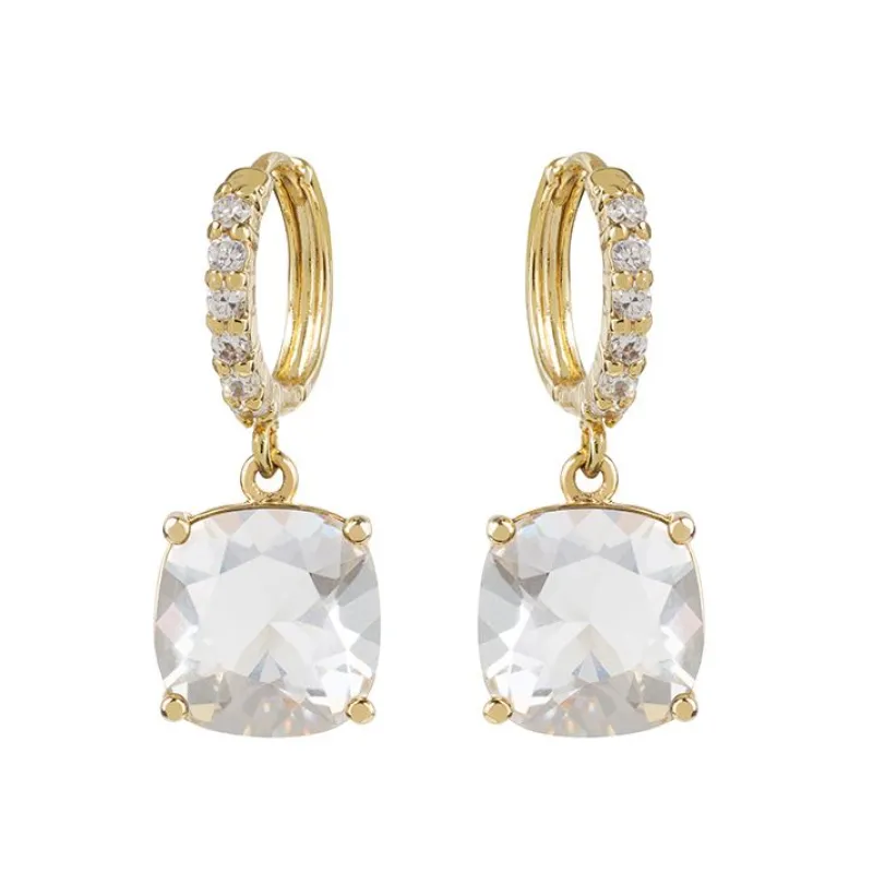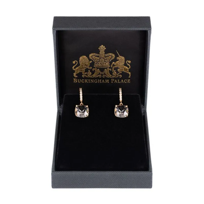 These Stylish Modern Earrings Perfectly Complement An Evening Look, The Square Cut White Crystal Has An Exquisite Sparkle Which Catches The Light And The Eye. It Is Accompanied By Smaller Brilliant Cut Crystals Set Into The Front Of The Hoop. They Are Inspired By A Pair Of Earrings Worn By The Princess Of Wales.