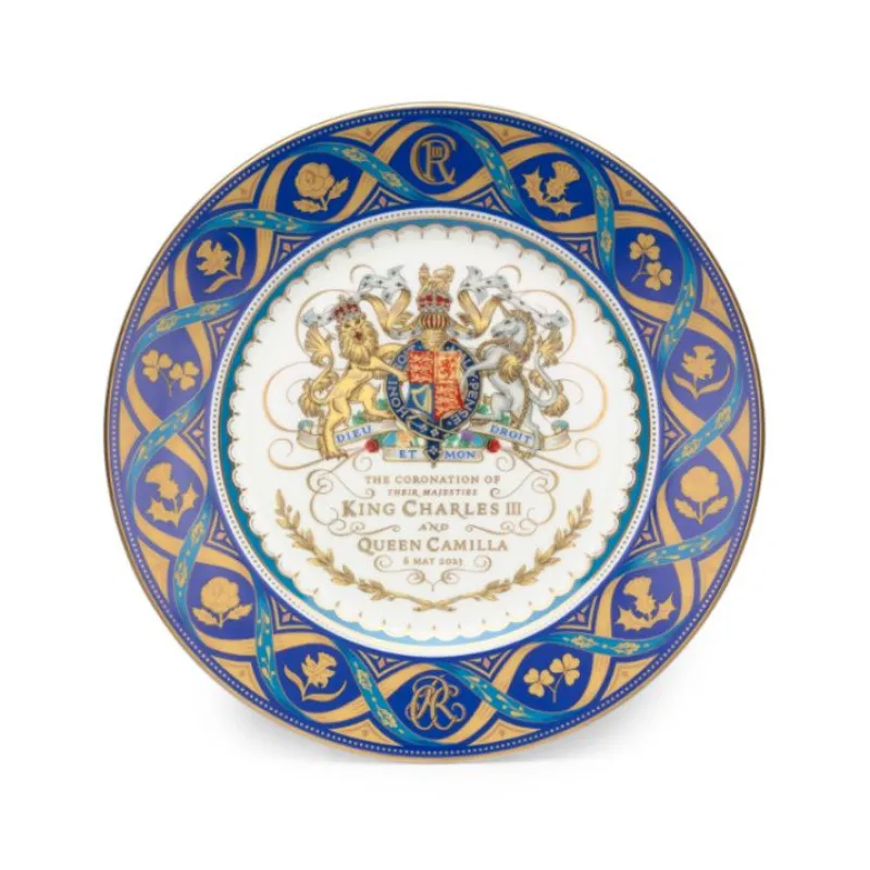 The Design On This Dessert Plate Features The Royal Coat Of Arms Supported By A Garland Of Laurel Leaves Representing Peace. Oak Leaves, For Strength, Are Joined By The National Emblems Of The Four Nations Of The United Kingdom – Thistle, Rose, Shamrock And Daffodil Within An Entwined Ribbon That Represents The Supportive Partnership Between The King And Queen.