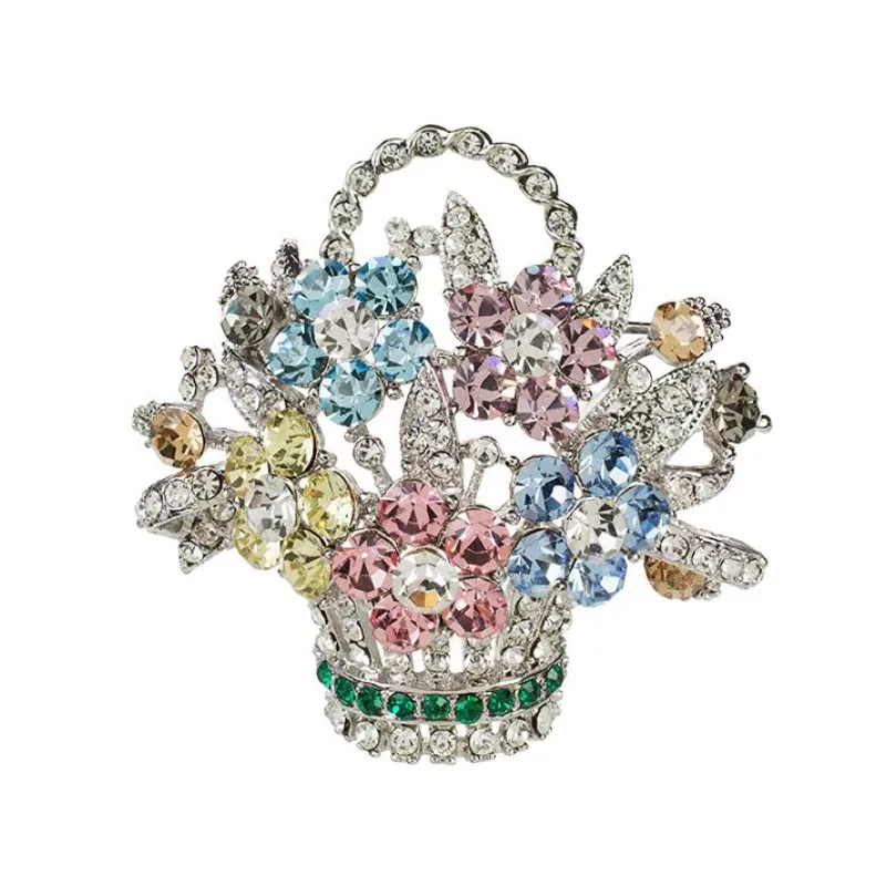 This Colourful Brooch Features An Elegant Arrangement Of Pastel Flowers In A Basket. It Is Set With Coloured Cut Glass Crystals Of The Highest Quality Which Catch The Light And The Eye.A Beautiful Piece Which Is Perfect For Celebrating Any Occasion And For Gifting To Someone Incredible.