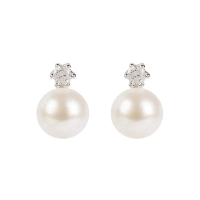 With A Freshwater Pearl, Surmounted By A Sparkling Cubic Zirconia Crystal Inlaid Into 925 Sterling Silver, These Beautiful Stud Earrings Are Perfect To Wear During The Day Or For An Evening.