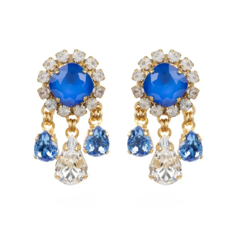 Inspired By The Timeless Pieces Worn By Her Majesty The Queen. Make A Statement With Striking Blue, Hand-Painted Crystals With A Clear Tear Drop Crystal.