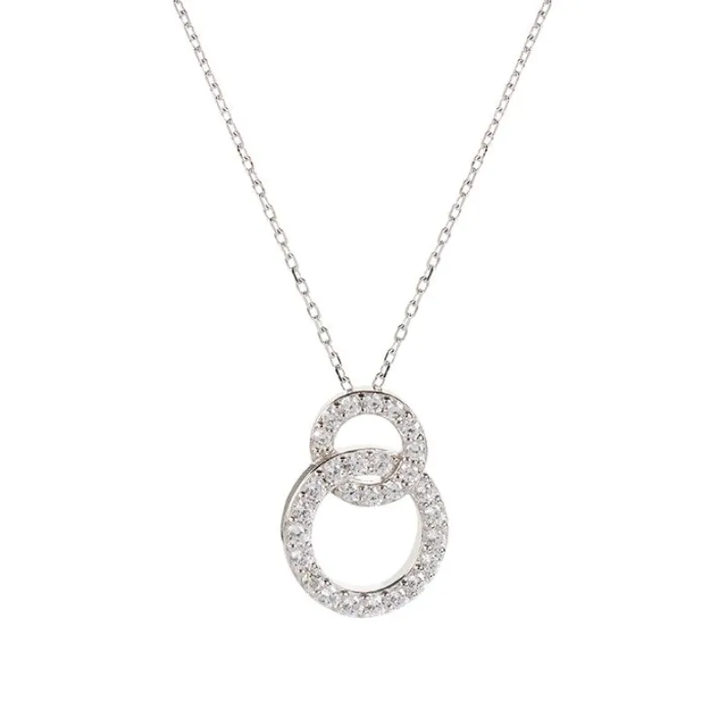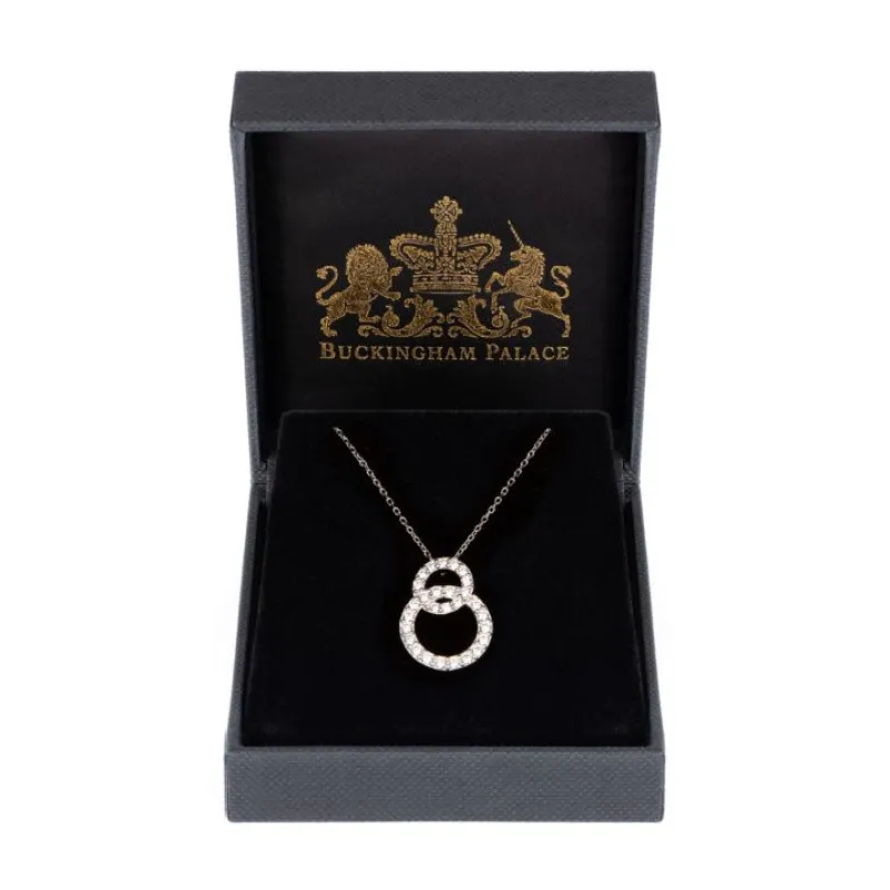 This Beautiful Sterling Silver Pendant Features Two Interlocking Cubic Zirconia Circles Inspired By The Vladimir Tiara. It Has A Timeless Elegance Which Can Add A Touch Of Sparkle To Any Outfit.